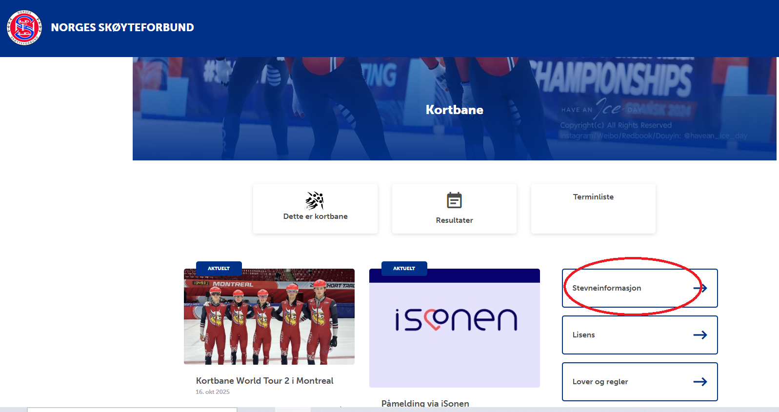 I sesongen 2025-2026 publiseres kortbane stevneinvitasjoner sammen med invitasjoner til løp i hurtigløp.