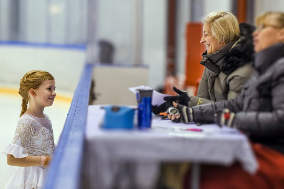 I Oppvisningsklassen vil løperens program vurderes av to personer, en teknisk spesialist og en dommer. Den tekniske spesialisten identifiserer alle elementene og vurderer vanskelighetsgrad (Levels, GOE, e og <<). Dommeren vurderer to programkomponenter: skøyteferdigheter og fremførelse. Dommeren gir to tilbakemeldinger på hva som var bra, og én tilbakemelding på hva som må jobbes mer med. Etter at programmet er gjennomført og løperen har neiet/bukket og plukket opp blomster, hentes arkene med tilbakemeldinger hos dommerne av løperen selv eller treneren.
